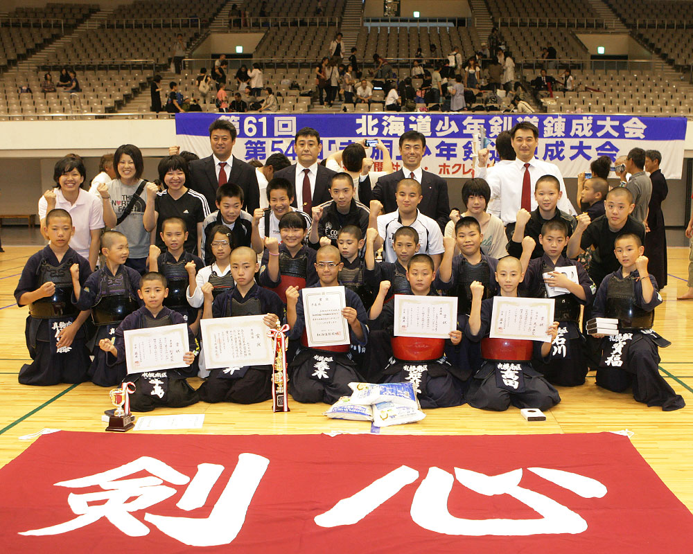 優 勝 平取義経剣心会 ( 平取) 準優勝 真駒内少年剣道会 A (札幌南区) 第三位 苫小牧至誠館 (苫小牧) 第三位 江別剣道連盟 A (江別) 敢闘賞 音更柳町剣道少年団 (音更) 敢闘賞 久保内剣友会 (壮瞥) 敢闘賞 斜里無心道場 (斜里) 敢闘賞 伊達綱代道場 A (伊達)