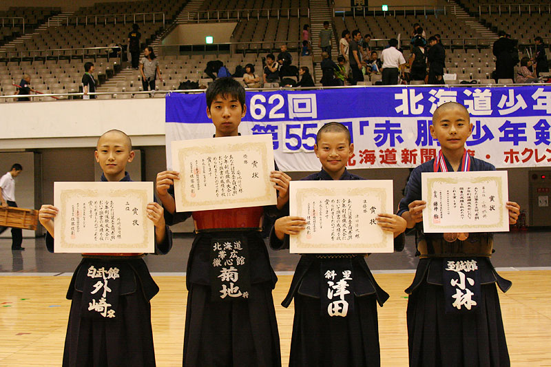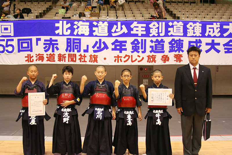 優 勝 苫小牧至誠館 ( 苫小牧) 準優勝 平取義経剣心館 (平取) 第三位 札幌厚別区剣道連盟A (札幌厚別区) 第三位 真駒内少年剣道会A (札幌南区) 敢闘賞 帯広徹心館A (全十勝) 敢闘賞 新十津川尚武会B (新十津川) 敢闘賞 苫小牧如水館 (苫小牧) 敢闘賞 札幌清田区剣道連盟A (札幌清田区)