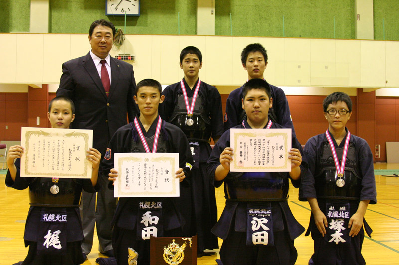 優 勝 光陵 (岩見沢) 準優勝 札幌北区剣道連盟A (札幌北区) 第三位 千歳A (千歳) 第三位 森剣道スポーツ少年団 (森)