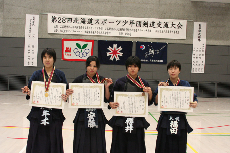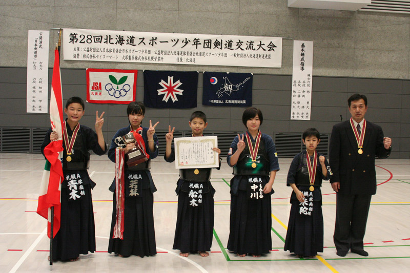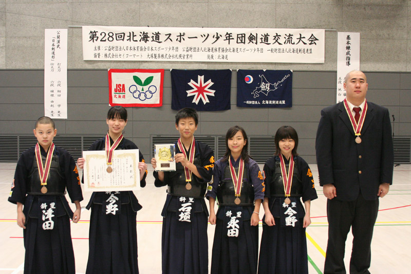 優 勝 札幌市剣道スポ少選抜A(札幌A) 準優勝 苫小牧市剣道スポ少選抜(胆振A) 第三位 斜里無心剣道スポ少年団(網走B) 第三位 旭川市剣道スポ少選抜(上川A)