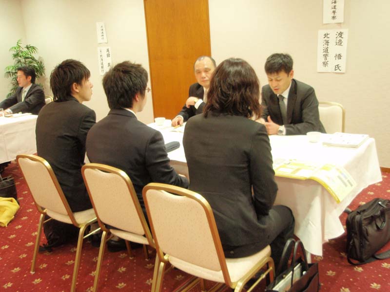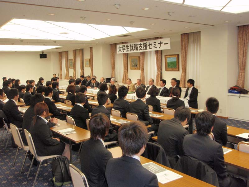 その後は、昨年の本セミナーに参加して就職した先輩や本年度内定している先輩から自分の行動等のアドバイス、そして各講師から、その会社や官公庁等についての職場実態や就職状況等について説明。さらに、受講者が希望する業界毎に分かれて個別に面談してその職場の実態など詳しい内容を聞いたり、質問したりした。