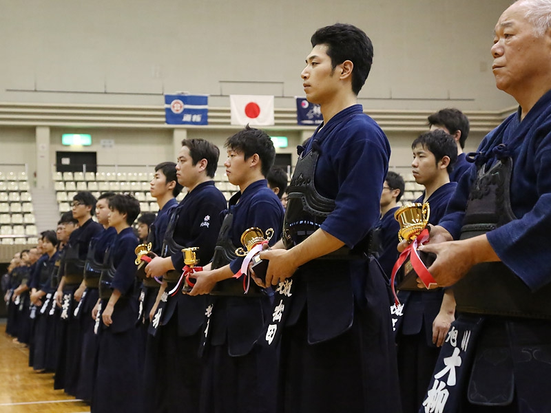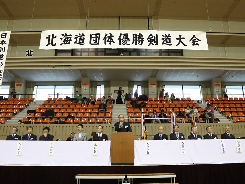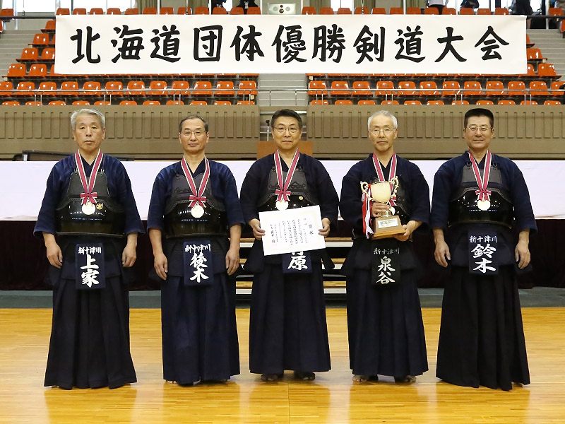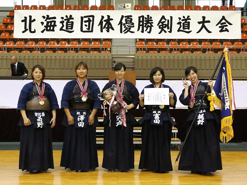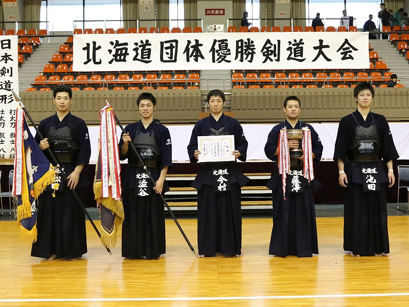 平成27年9月13日、旭川大雪アリーナに於いて標記大会が開催されました。A級は六段以上の男子、B級は五段以下の男子、C級は女子、D級は60歳以上の男子、E級は50歳以上の女子、それぞれの選手によって編成された団体により争われる大会です。当日は雨に見舞われた旭川でしたが全道からA級37チーム、B級56チーム、C級17チーム、D級27チーム、E級11チーム、総勢718名の剣士が集まり熱戦を繰り広げました。結果は次のとおりです。