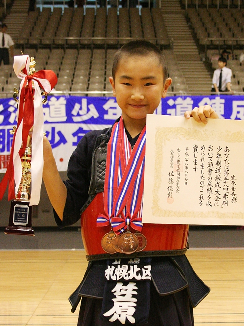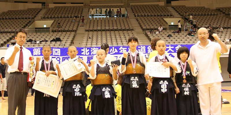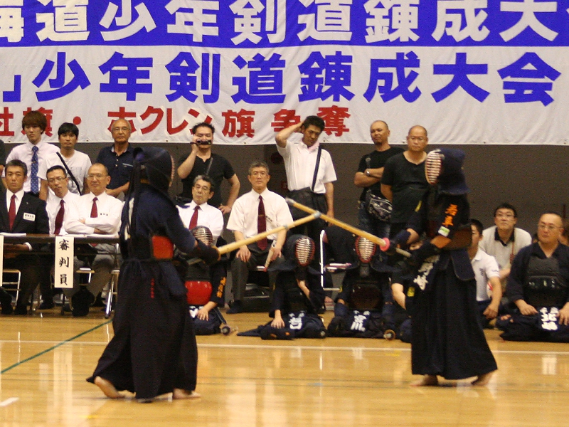 八月七日(日)、第65回北海道少年剣道錬成大会、第58回「赤胴」少年錬成大会が真駒内セキスイハイムアリーナにおいて開催された。全道各地より約900名の代表選手が全12会場で熱戦を繰り広げた。