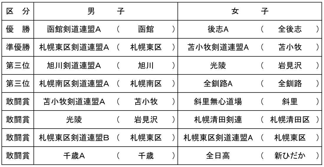 試合結果(第27回北海道中学生剣道錬成大会)