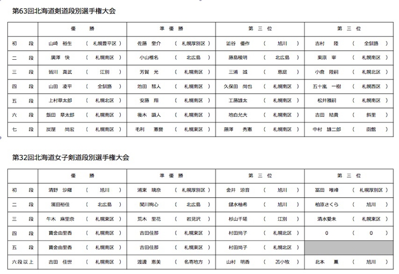 第63回北海道剣道段別選手権大会 兼 第59回東北・北海道対抗剣道大会予選会