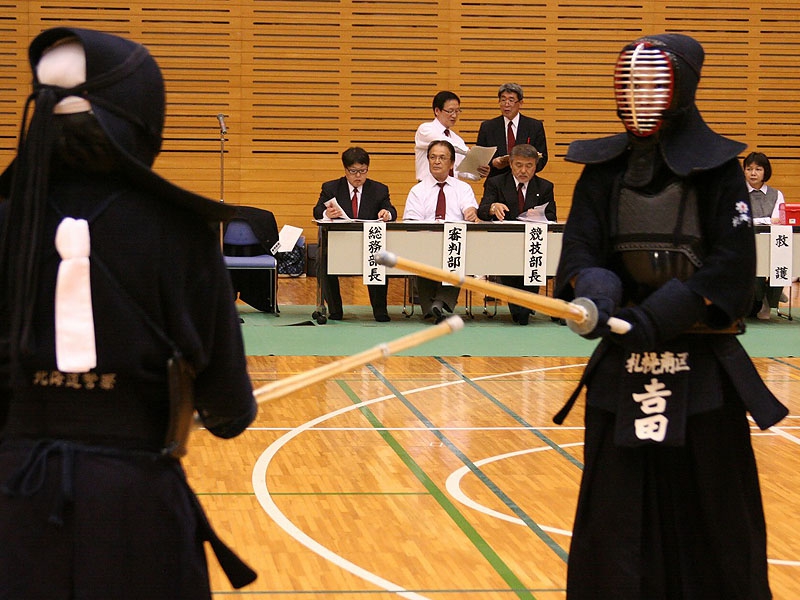 標記大会が7月1日(土)、北海道立総合体育センターで開催された。この大会は、先に行われた北海道段別段別剣道選手権大会を勝ち抜いた男子選手14名、女子選手12名がエントリーして北海道剣道の頂点と全日本剣道選手権大会の北海道代表の座を目指した。