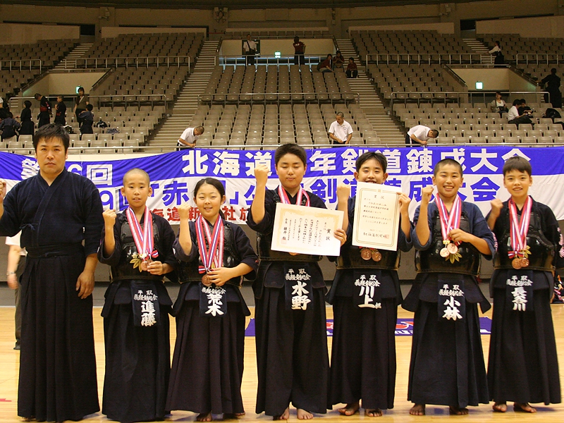 8月6日(日)、真駒内セキスイハイムアイスアリーナにおいて、標記大会が開催され、全道から約900名の小学生剣士が集い、熱戦が繰り広げられた。