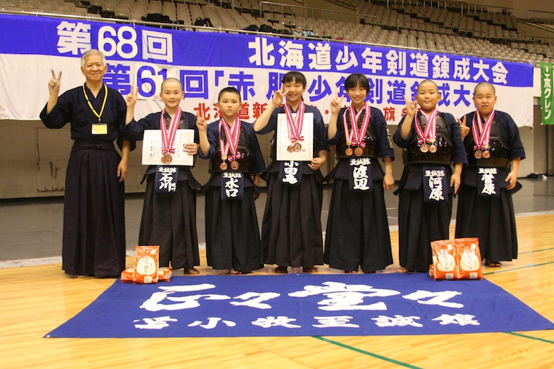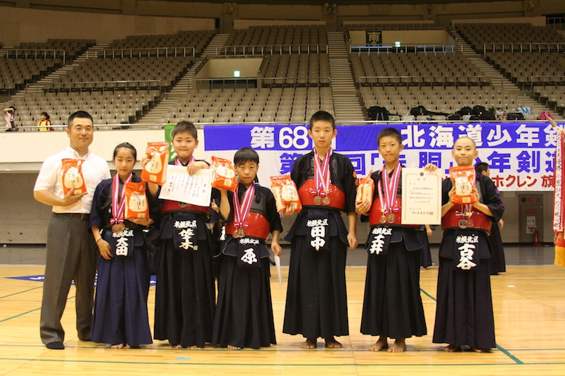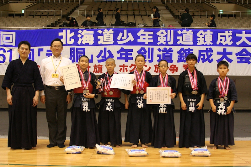 7月28日(日)真駒内セキスイハイムアイスアリーナにて、標記大会が開催された。全道から約千名の小学生剣士が集い、団体戦、個人戦に日ごろの成果を発揮した。結果は次のとおり。