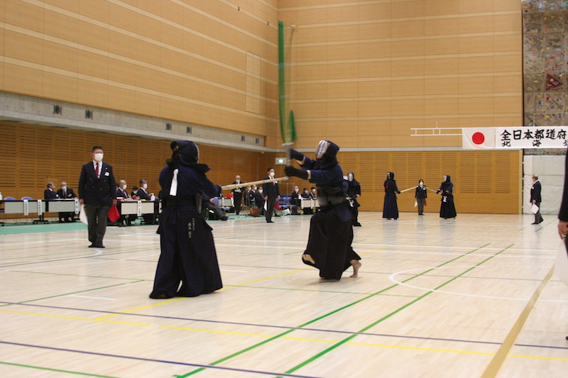 令和4年2月13日(日)午前9時30分から、北海きたえーるにおいて、標記大会が開催された。全道各地から166名の選手が参加して、北海道代表の座を懸けて熱戦が繰り広げられた。なお、先鋒は先に行われた、高等学校新人戦大会で優勝した男女がそれぞれ決定している。
