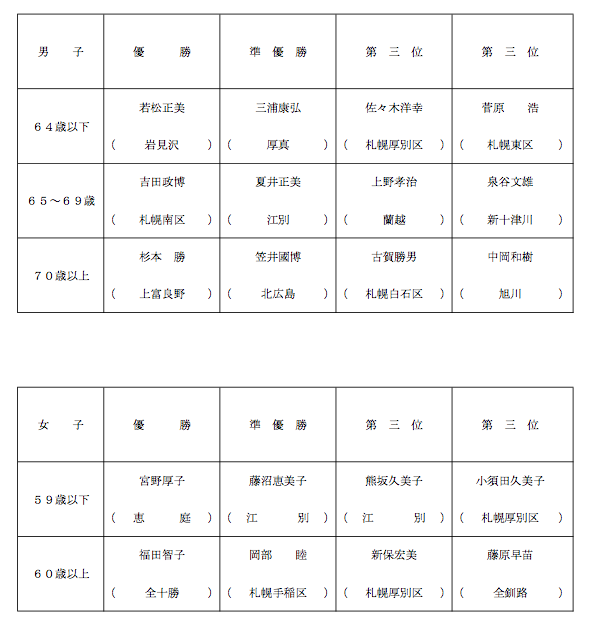 6月11日(日)、北海道立総合体育センター(サブアリーナ)において、第30回北海道高齢者大会(兼 第31回全国健康福祉祭剣道交流大会選手選考会)が開催された。大会結果ならびに代表選手は次のとおり。